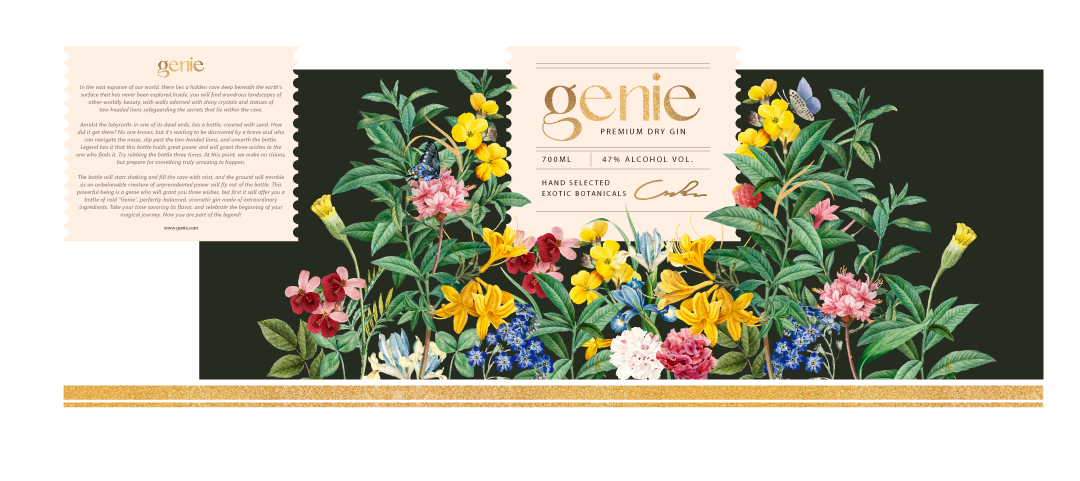 The bottle will start shaking and fill the cave with mist, and the ground will tremble as an unbelievable creature of unprecedented power will fly out of the bottle. This powerful being is a genie who will grant you three wishes, but first it will offer you a bottle of cold “Genie”, perfectly-balanced, aromatic gin made of extraordinary ingredients. Take your time savouring its flavour, and celebrate the beginning of your magical journey. Now you are part of the legend!